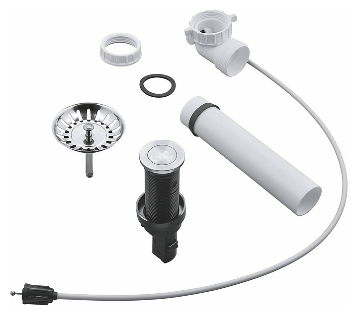 Сливной гарнитур для кухонной мойки Grohe 40986SD0 предназначен для отведения сточных вод в канализационную систему в кухонных помещениях. Модель оснащена корзинчатым вентилем. Особенности: