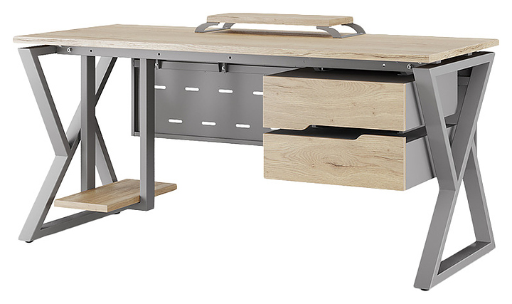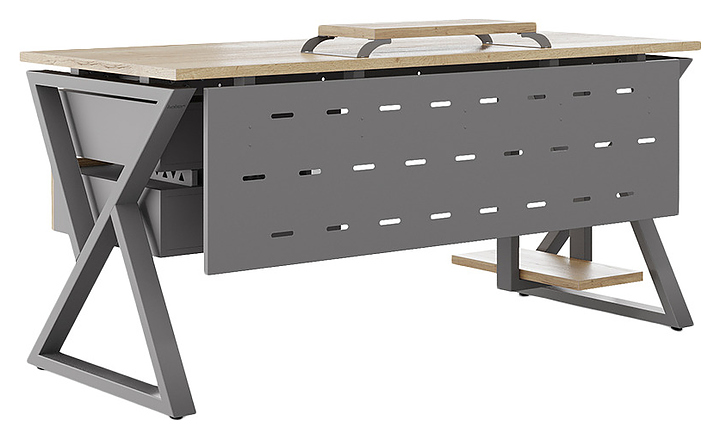 Офисный стол Кобор W-120/60 aluminum/natural используется в офисных помещениях и кабинетах руководителей. Модель оснащена W-образными опорами. Каркас выполнен из металла, выкрашенного в цвет алюминиевый металлик (RAL9006), столешница – из ламинированной древесно-стружечной плиты (ЛДСП) цвета натуральный дуб (H1180 ST37). Опции (заказываются отдельно):
