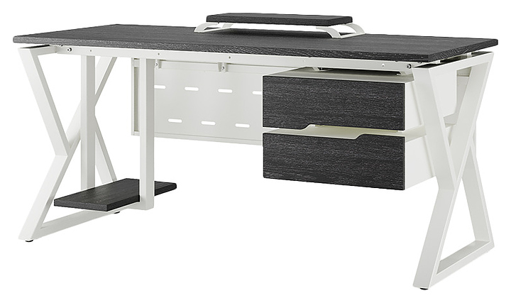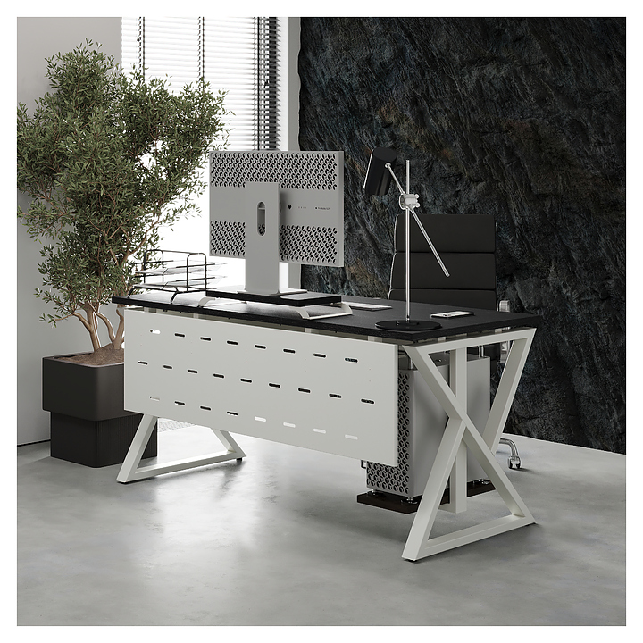 Офисный стол Кобор W-80/80 white/glazed используется в офисных помещениях и кабинетах руководителей. Модель оснащена W-образными опорами. Каркас выполнен из металла, выкрашенного в цвет белый муар (RAL9016), столешница – из ламинированной древесно-стружечной плиты (ЛДСП) цвета черный дуб (H3178 ST37). Опции (заказываются отдельно):