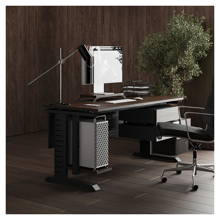 Офисный стол Кобор L2-120/80 black/charlston используется в офисных помещениях и кабинетах руководителей. Модель оснащена L-образными опорами с декоративными вставками на боковинах. Каркас выполнен из металла, выкрашенного в цвет черный муар (RAL9005), столешница – из ламинированной древесно-стружечной плиты (ЛДСП) цвета дуб чарльстон (H3154 ST36). Опции (заказываются отдельно):