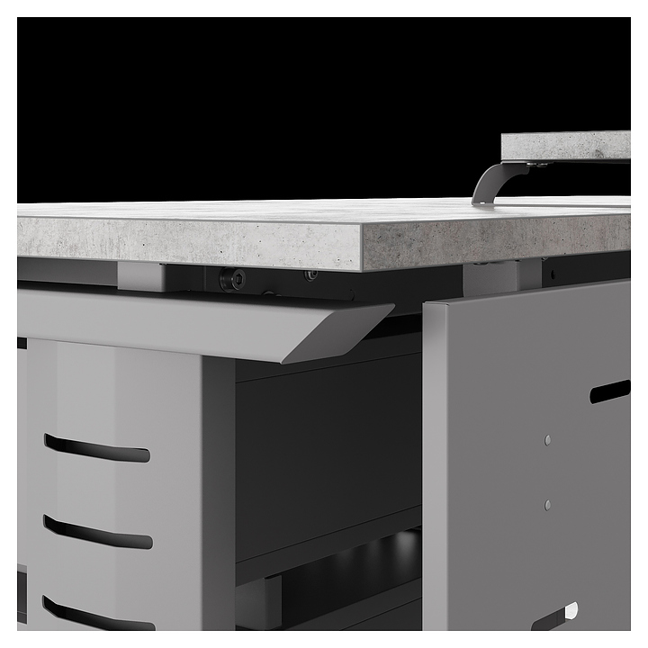 Офисный стол Кобор L2-100/80 aluminum/chicago используется в офисных помещениях и кабинетах руководителей. Модель оснащена L-образными опорами с декоративными вставками на боковинах. Каркас выполнен из металла, выкрашенного в цвет алюминиевый металлик (RAL9006), столешница – из ламинированной древесно-стружечной плиты (ЛДСП) цвета бетон чикаго (F186 ST9). Опции (заказываются отдельно):