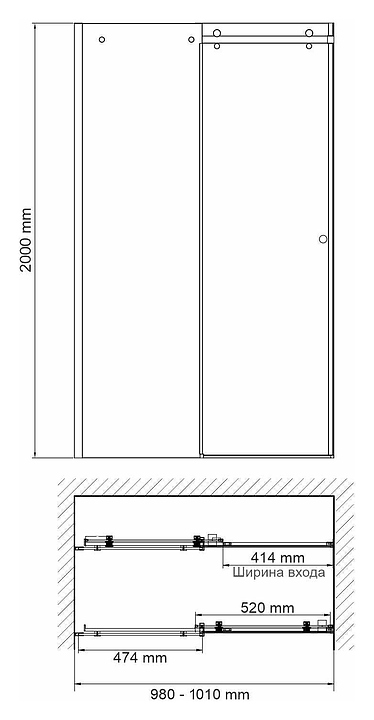 Дверь душевая Wasserkraft Vils 56R12 100х200 см, в нишу, раздвижная, серебристый профиль