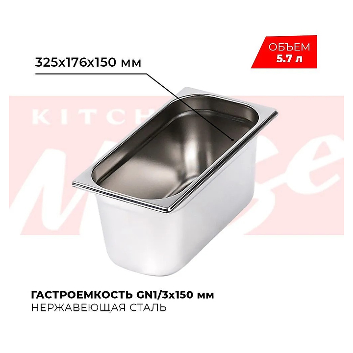 Гастроемкость Kitchen Muse 813-6 GN 1/3-150 (325х176х150) нерж.