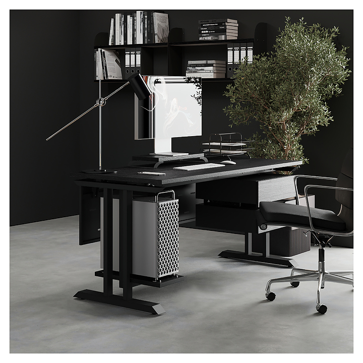 Офисный стол Кобор T-180/80 black/glazed используется в офисных помещениях и кабинетах руководителей. Модель оснащена T-образными опорами. Каркас выполнен из металла, выкрашенного в цвет черный муар (RAL9005), столешница – из ламинированной древесно-стружечной плиты (ЛДСП) цвета черный дуб (H3178 ST37). Опции (заказываются отдельно):