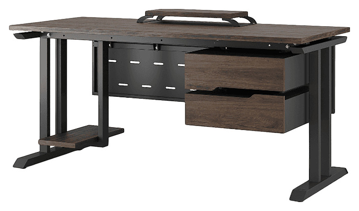 Офисный стол Кобор T-180/70 black/charlston используется в офисных помещениях и кабинетах руководителей. Модель оснащена T-образными опорами. Каркас выполнен из металла, выкрашенного в цвет черный муар (RAL9005), столешница – из ламинированной древесно-стружечной плиты (ЛДСП) цвета дуб чарльстон (H3154 ST36). Опции (заказываются отдельно):