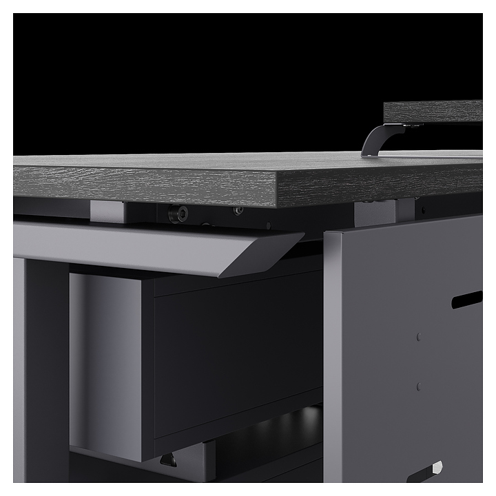 Офисный стол Кобор T-160/70 graphite/glazed используется в офисных помещениях и кабинетах руководителей. Модель оснащена T-образными опорами. Каркас выполнен из металла, выкрашенного в цвет графит муар (RAL7024), столешница – из ламинированной древесно-стружечной плиты (ЛДСП) цвета черный дуб (H3178 ST37). Опции (заказываются отдельно):