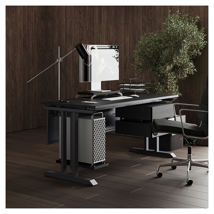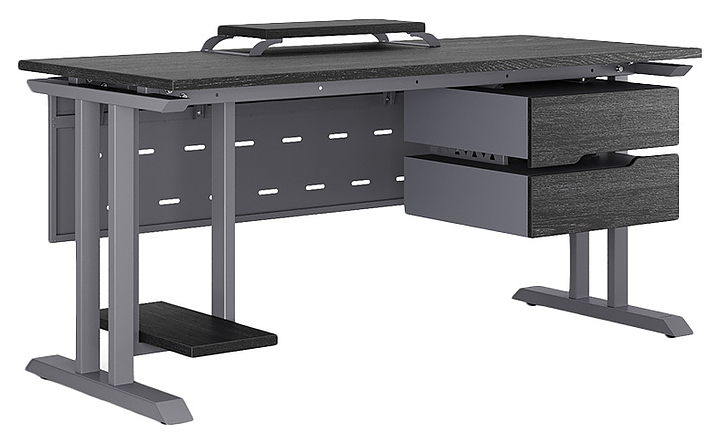 Офисный стол Кобор T-100/80 graphite/glazed используется в офисных помещениях и кабинетах руководителей. Модель оснащена T-образными опорами. Каркас выполнен из металла, выкрашенного в цвет графит муар (RAL7024), столешница – из ламинированной древесно-стружечной плиты (ЛДСП) цвета черный дуб (H3178 ST37). Опции (заказываются отдельно):