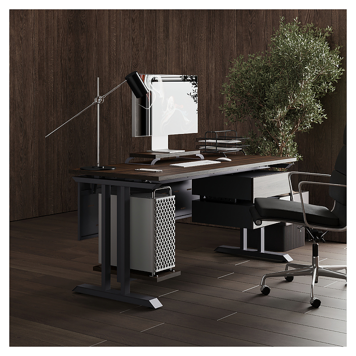 Офисный стол Кобор T-140/60 graphite/charlston используется в офисных помещениях и кабинетах руководителей. Модель оснащена T-образными опорами. Каркас выполнен из металла, выкрашенного в цвет графит муар (RAL7024), столешница – из ламинированной древесно-стружечной плиты (ЛДСП) цвета дуб чарльстон (H3154 ST36). Опции (заказываются отдельно):