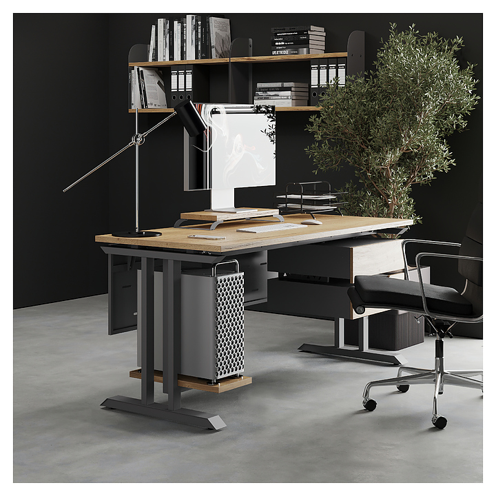 Офисный стол Кобор T-120/70 aluminum/natural используется в офисных помещениях и кабинетах руководителей. Модель оснащена T-образными опорами. Каркас выполнен из металла, выкрашенного в цвет алюминиевый металлик (RAL9006), столешница – из ламинированной древесно-стружечной плиты (ЛДСП) цвета натуральный дуб (H1180 ST37). Опции (заказываются отдельно):