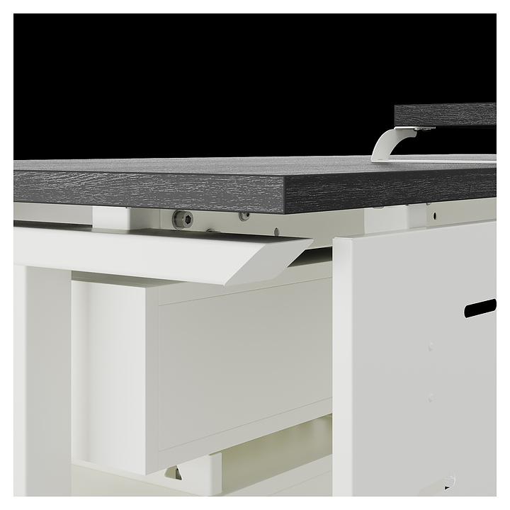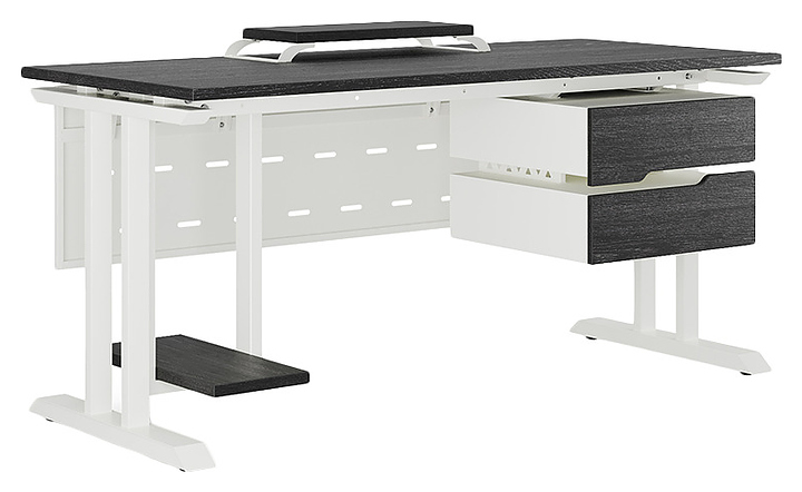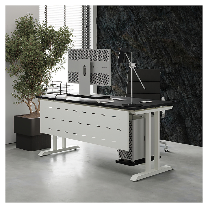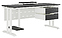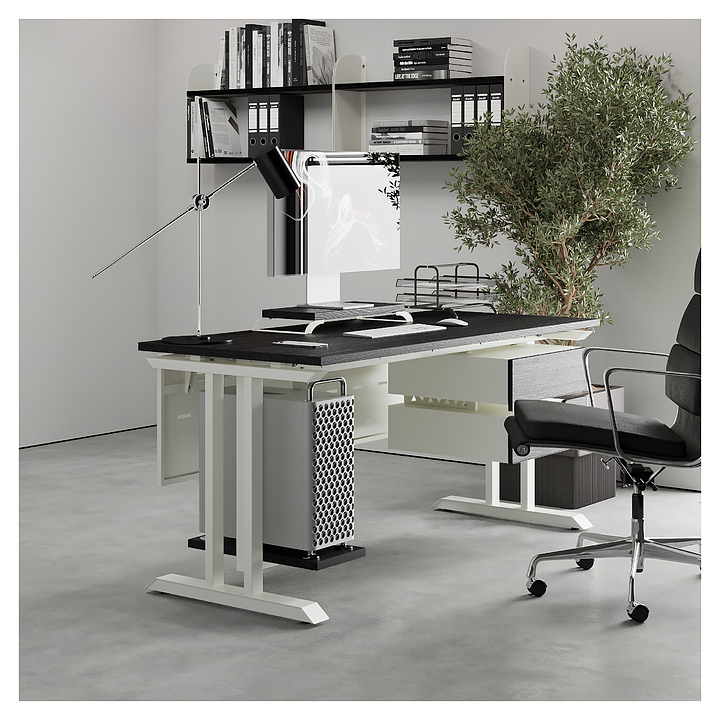 Офисный стол Кобор T-120/60 white/glazed используется в офисных помещениях и кабинетах руководителей. Модель оснащена T-образными опорами. Каркас выполнен из металла, выкрашенного в цвет белый муар (RAL9016), столешница – из ламинированной древесно-стружечной плиты (ЛДСП) цвета черный дуб (H3178 ST37). Опции (заказываются отдельно):