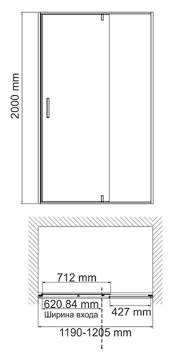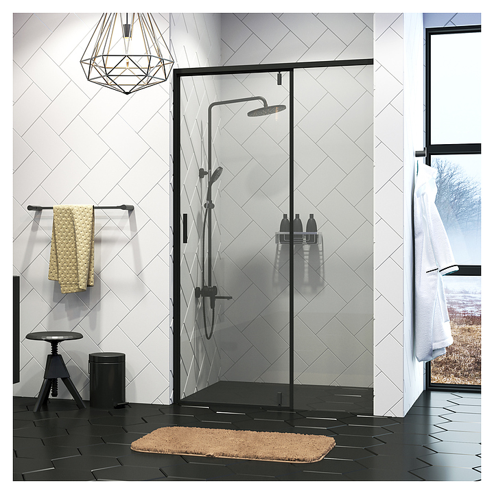 Дверь душевая Wasserkraft Elbe 74P05 120х200 см, в нишу, распашная, черный профиль