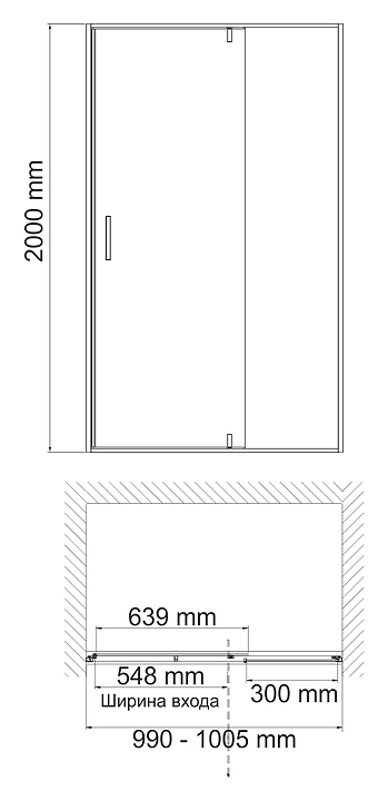 Дверь душевая Wasserkraft Elbe 74P12 100х200 см, в нишу, распашная, черный профиль