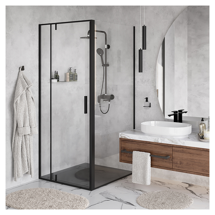 Уголок душевой Wasserkraft Elbe 74P19 100х100 см, черный профиль