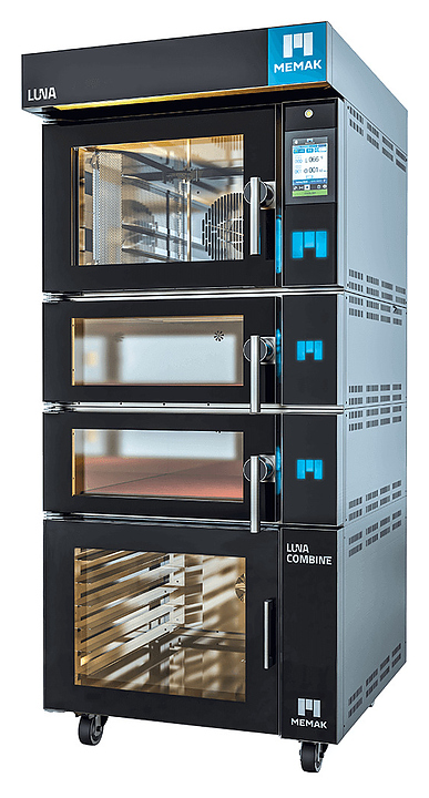 Комбинированная печь с расстоечным шкафом и вытяжным зонтом Memak LUNA COMBINE-2-F используются на предприятиях пищевой промышленности, общественного питания и торговли для предварительной расстойки тестовых заготовок и выпечки хлебобулочных и кондитерских изделий. Модель оснащена сенсорным дисплеем с программируемым контроллером, позволяющим управлять всеми ярусами. Термостойкая конструкция выполнена из металла, дверцы с двойным остеклением. Особенности: