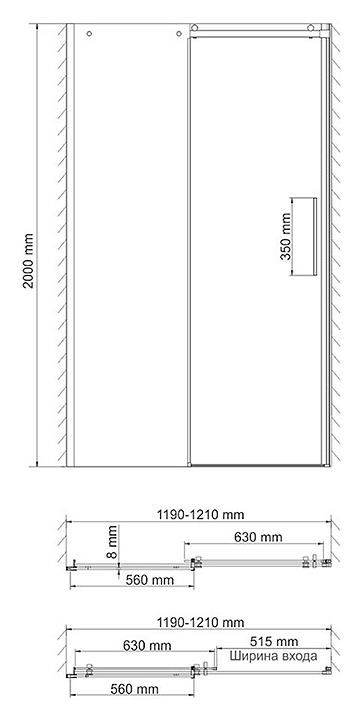 Дверь душевая Wasserkraft Dinkel 58R05 120х200 см, в нишу, раздвижная, серебристый профиль