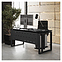 Офисный стол Кобор O2-160/60 black/glazed используется в офисных помещениях и кабинетах руководителей. Модель оснащена усиленными вертикальной балкой O-образными опорами. Каркас выполнен из металла, выкрашенного в цвет черный муар (RAL9005), столешница – из ламинированной древесно-стружечной плиты (ЛДСП) цвета черный дуб (H3178 ST37). Опции (заказываются отдельно):