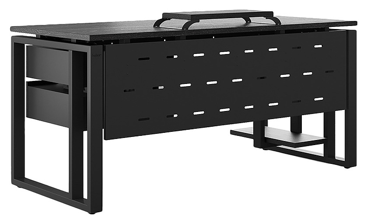 Офисный стол Кобор O2-140/70 black/glazed используется в офисных помещениях и кабинетах руководителей. Модель оснащена усиленными вертикальной балкой O-образными опорами. Каркас выполнен из металла, выкрашенного в цвет черный муар (RAL9005), столешница – из ламинированной древесно-стружечной плиты (ЛДСП) цвета черный дуб (H3178 ST37). Опции (заказываются отдельно):
