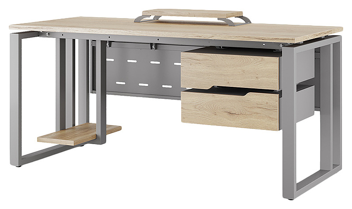 Офисный стол Кобор O2-80/70 aluminum/natural используется в офисных помещениях и кабинетах руководителей. Модель оснащена усиленными вертикальной балкой O-образными опорами. Каркас выполнен из металла, выкрашенного в цвет алюминиевый металлик (RAL9006), столешница – из ламинированной древесно-стружечной плиты (ЛДСП) цвета натуральный дуб (H1180 ST37). Опции (заказываются отдельно):