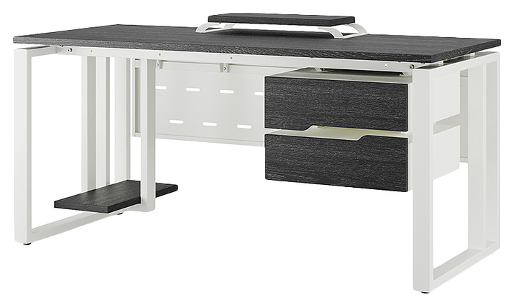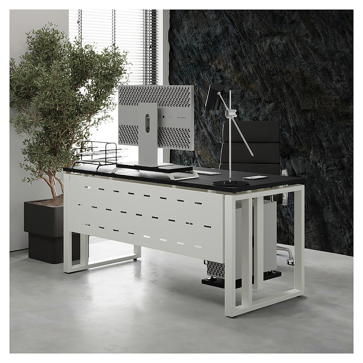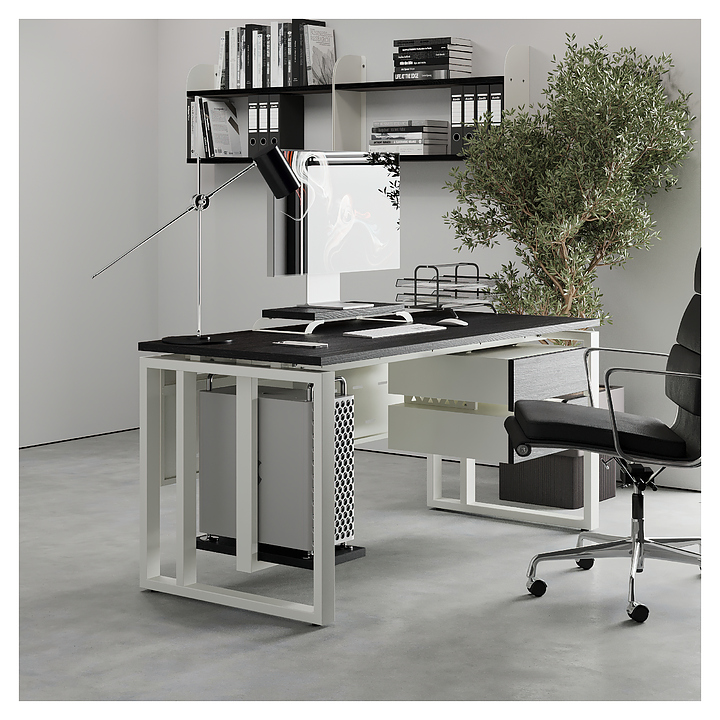 Офисный стол Кобор O2-140/60 white/glazed используется в офисных помещениях и кабинетах руководителей. Модель оснащена усиленными вертикальной балкой O-образными опорами. Каркас выполнен из металла, выкрашенного в цвет белый муар (RAL9016), столешница – из ламинированной древесно-стружечной плиты (ЛДСП) цвета черный дуб (H3178 ST37). Опции (заказываются отдельно):