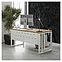 Офисный стол Кобор O2-180/60 white/natural используется в офисных помещениях и кабинетах руководителей. Модель оснащена усиленными вертикальной балкой O-образными опорами. Каркас выполнен из металла, выкрашенного в цвет белый муар (RAL9016), столешница – из ламинированной древесно-стружечной плиты (ЛДСП) цвета натуральный дуб (H1180 ST37). Опции (заказываются отдельно):