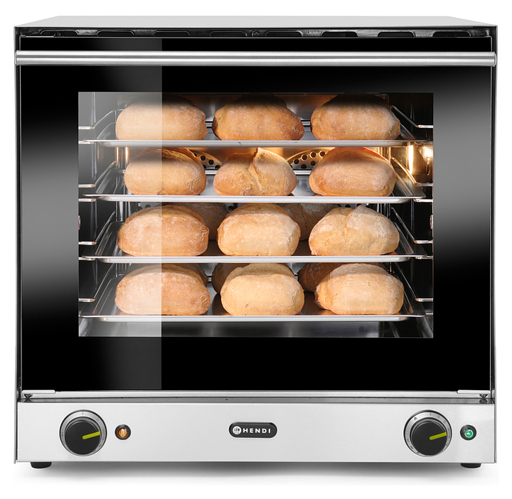 Конвекционная печь HENDI H90 227060 используется на предприятиях общественного питания и торговли для приготовления мяса и рыбы, выпечки хлебобулочных и кондитерских изделий. Модель оснащена плавной регулировкой температуры, 2 нагревательными элементами, 2 вентиляторами, таймером на 120 минут, подсветкой и двойным жаропрочным легкосъемным стеклом. Корпус и камера выполнены из нержавеющей стали. Камера имеет частичное эмалированное покрытие В комплект поставки входят 4 противня. Дополнительные характеристики: