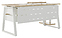 Офисный стол Кобор TR-120/60 white/natural используется в офисных помещениях и кабинетах руководителей. Модель оснащена опорами в форме трапеции. Каркас выполнен из металла, выкрашенного в цвет белый муар (RAL9016), столешница – из ламинированной древесно-стружечной плиты (ЛДСП) цвета натуральный дуб (H1180 ST37). Опции (заказываются отдельно):