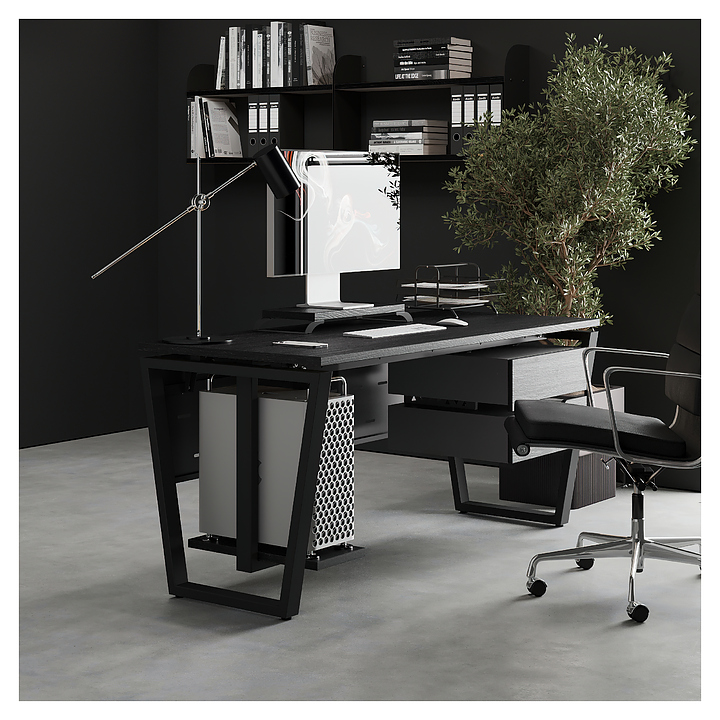 Офисный стол Кобор OTR-140/80 black/glazed используется в офисных помещениях и кабинетах руководителей. Модель оснащена опорами в форме обратной трапеции. Каркас выполнен из металла, выкрашенного в цвет черный муар (RAL9005), столешница – из ламинированной древесно-стружечной плиты (ЛДСП) цвета черный дуб (H3178 ST37). Опции (заказываются отдельно):