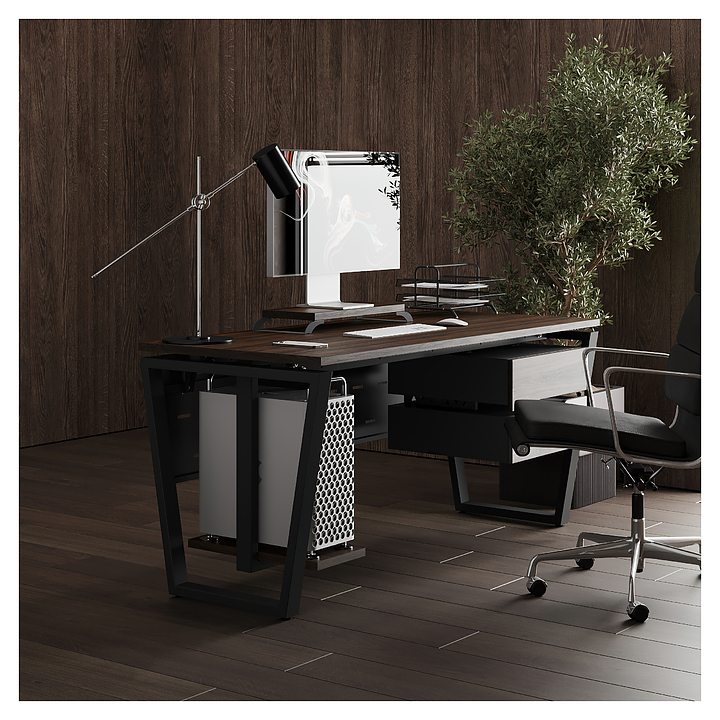 Офисный стол Кобор OTR-80/80 black/charlston используется в офисных помещениях и кабинетах руководителей. Модель оснащена опорами в форме обратной трапеции. Каркас выполнен из металла, выкрашенного в цвет черный муар (RAL9005), столешница – из ламинированной древесно-стружечной плиты (ЛДСП) цвета дуб чарльстон (H3154 ST36). Опции (заказываются отдельно):