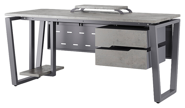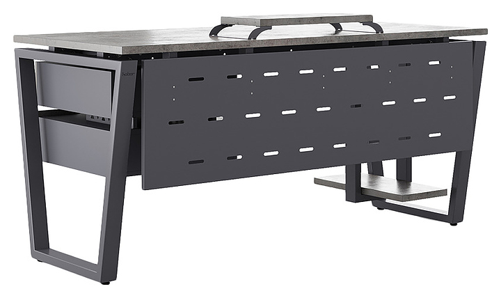 Офисный стол Кобор OTR-160/70 graphite/chicago используется в офисных помещениях и кабинетах руководителей. Модель оснащена опорами в форме обратной трапеции. Каркас выполнен из металла, выкрашенного в цвет графит муар (RAL7024), столешница – из ламинированной древесно-стружечной плиты (ЛДСП) цвета бетон чикаго (F186 ST9). Опции (заказываются отдельно):