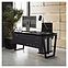 Офисный стол Кобор OTR-160/70 graphite/glazed используется в офисных помещениях и кабинетах руководителей. Модель оснащена опорами в форме обратной трапеции. Каркас выполнен из металла, выкрашенного в цвет графит муар (RAL7024), столешница – из ламинированной древесно-стружечной плиты (ЛДСП) цвета черный дуб (H3178 ST37). Опции (заказываются отдельно):