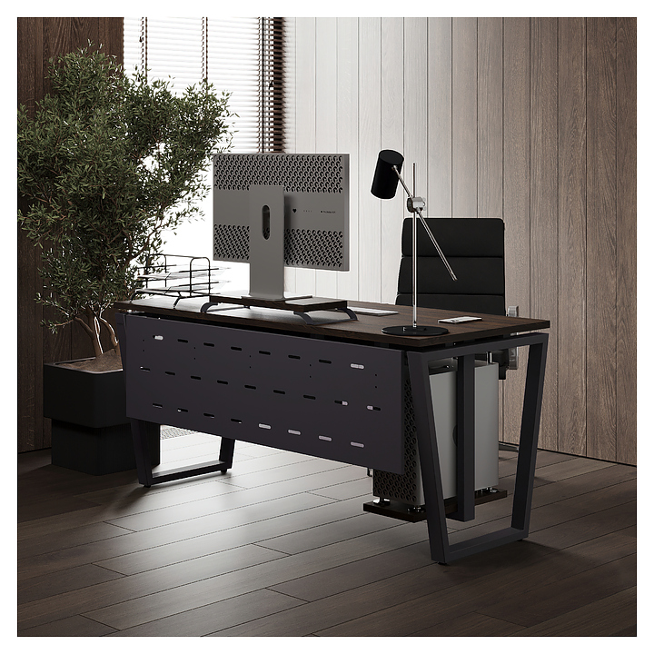 Офисный стол Кобор OTR-100/60 graphite/charlston используется в офисных помещениях и кабинетах руководителей. Модель оснащена опорами в форме обратной трапеции. Каркас выполнен из металла, выкрашенного в цвет графит муар (RAL7024), столешница – из ламинированной древесно-стружечной плиты (ЛДСП) цвета дуб чарльстон (H3154 ST36). Опции (заказываются отдельно):