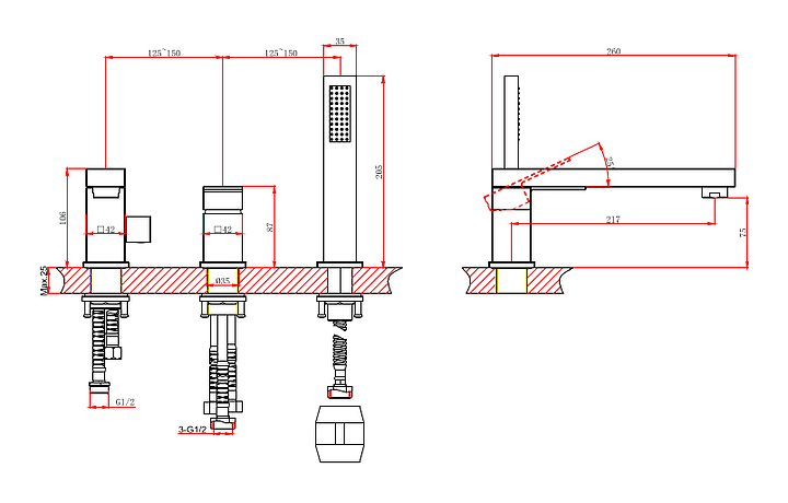 Смеситель для ванны с душем D&K Bayern.Liszt DA1514905