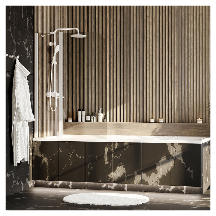 Шторка на ванну Wasserkraft Leine 35P01-80WHITE Fixed 80х140 см, распашная, профиль белый