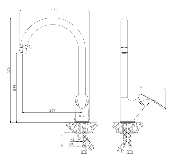 Смеситель OLIVE'S AVILA 02431AV предназначен для подачи горячей и холодной воды в кухонных помещениях. Модель оснащена керамическим картриджем, который обеспечивает плавный ход рычага смесителя, контроль и точность при выборе напора и температуры воды. Аэратор экономит расход воды и создает мягкую струю без брызг. Изделие и пьедестал выполнены из латуни, которая отличается прочностью, долговечностью и устойчивостью к перепадам температуры, аэратор - из пластика. В комплект поставки входят гибкая подводка и крепления. Дополнительные характеристики: