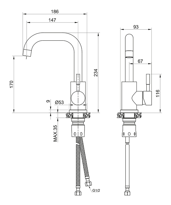 Смеситель OLIVE'S BALEAR 13105BLB предназначен для подачи горячей и холодной воды в кухонных помещениях. Однорычажный тип управления обеспечивает контроль и точность при выборе напора и температуры воды. Изделие выполнено из нержавеющей стали, которая отличается прочностью, долговечностью и устойчивостью к коррозии. Дополнительные характеристики: