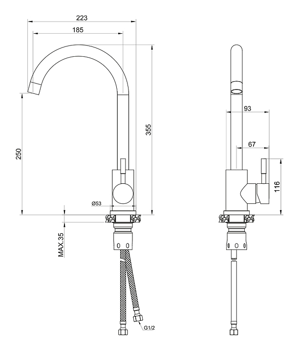Смеситель OLIVE'S BALEAR 13435-1BLB предназначен для подачи горячей и холодной воды в кухонных помещениях. Однорычажный тип управления обеспечивает контроль и точность при выборе напора и температуры воды. Изделие выполнено из нержавеющей стали, которая отличается прочностью, долговечностью и устойчивостью к коррозии. Дополнительные характеристики: