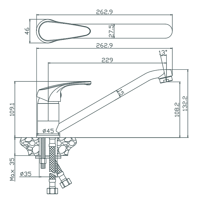 Смеситель OLIVE'S AVILA 02400AV предназначен для подачи горячей и холодной воды в кухонных помещениях. Модель оснащена керамическим картриджем, который обеспечивает плавный ход рычага смесителя, контроль и точность при выборе напора и температуры воды. Аэратор экономит расход воды и создает мягкую струю без брызг. Изделие выполнено из латуни, которая отличается прочностью, долговечностью и устойчивостью к перепадам температуры, аэратор - из пластика. В комплект поставки входят гибкая подводка и крепления. Дополнительные характеристики: