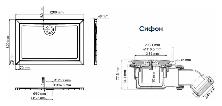 Поддон душевой с сифоном Wasserkraft Salm 27T06 120х80 см, белый