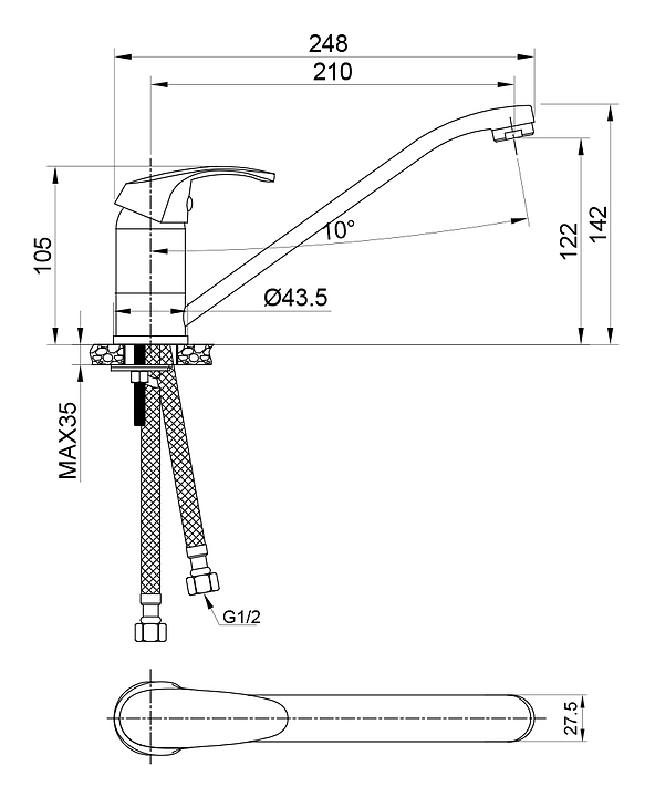 Смеситель OLIVE'S AVILA 02400-1AV предназначен для подачи горячей и холодной воды в кухонных помещениях. Однорычажный тип управления обеспечивает контроль и точность при выборе напора и температуры воды. Изделие выполнено из латуни, которая отличается прочностью, долговечностью и устойчивостью к перепадам температуры. Дополнительные характеристики:
