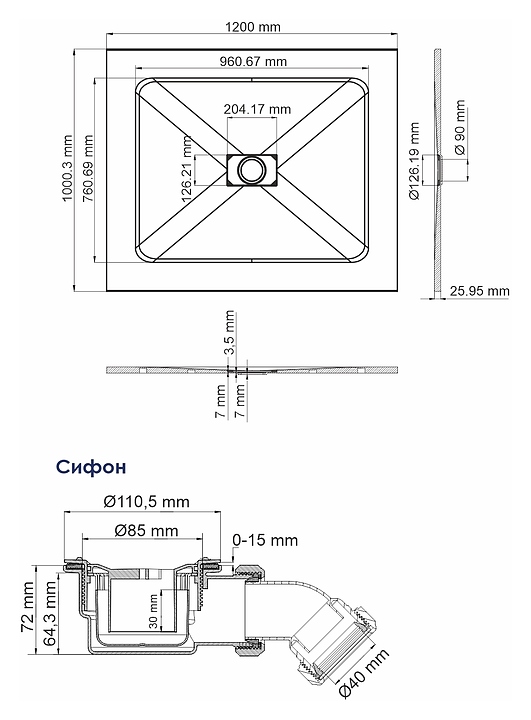 Поддон душевой с сифоном Wasserkraft Elbe 74T10 120х100 см, серый
