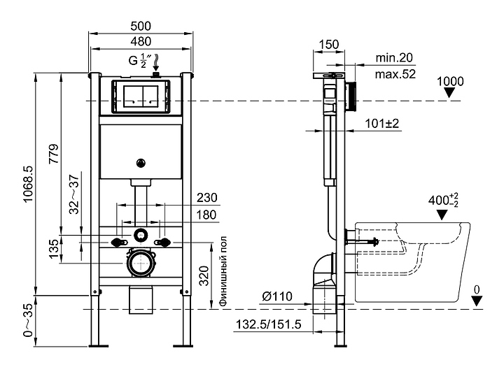 Инсталляция для унитаза OLIVE'S PORTO M48010-PR412W