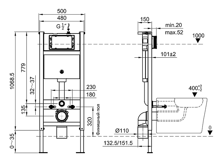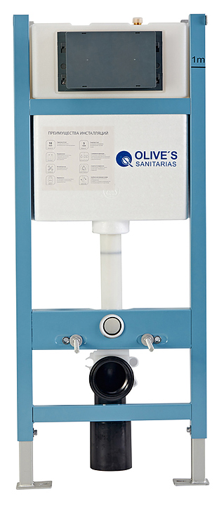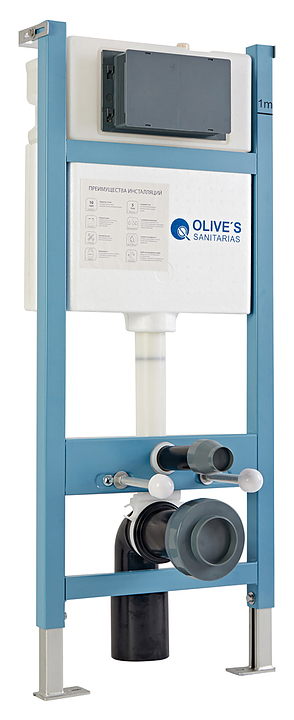 Инсталляция OLIVE'S M48010 предназначена для установки с унитазами. Рама выполнена из стали, бачок - из пластика. В комплект поставки входят бачок, фановая труба для подключения к канализации, переходные патрубки, крепления и заглушки. Особенности: