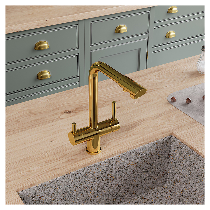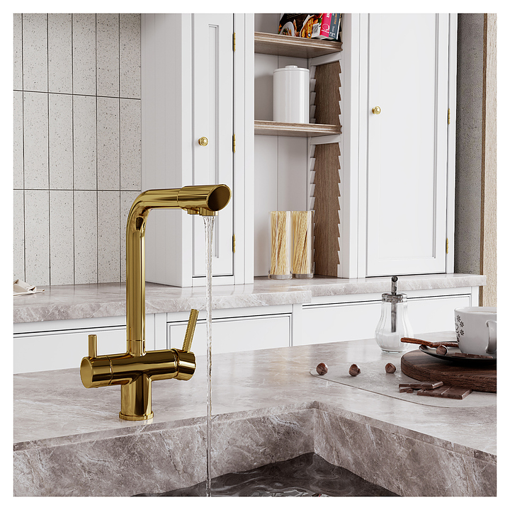 Смеситель для кухни Wasserkraft A8377 под фильтр для питьевой воды, глянцевое золото