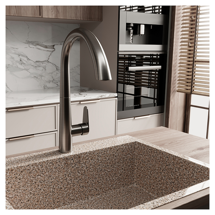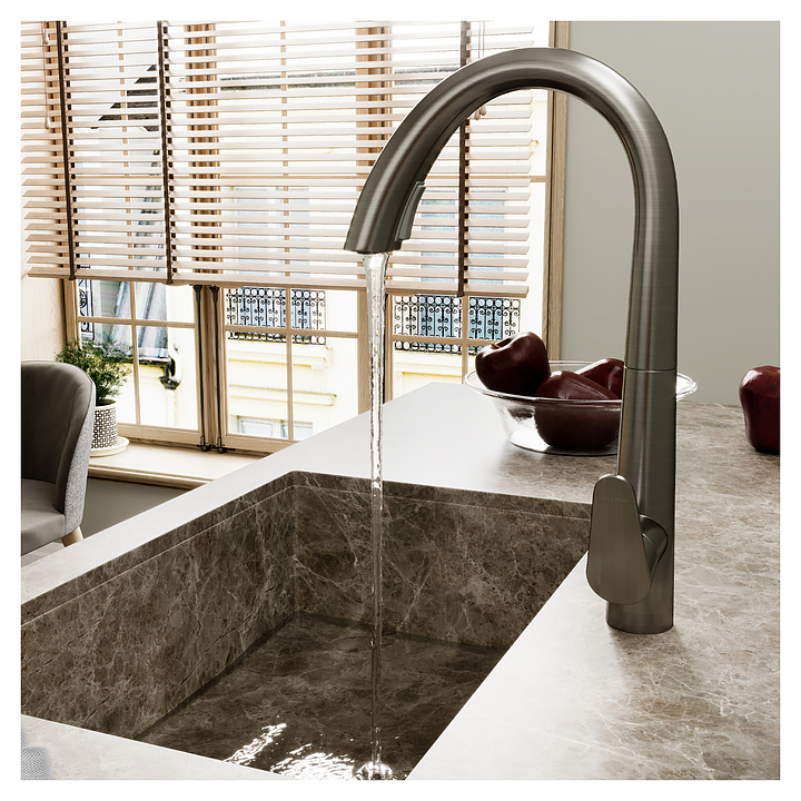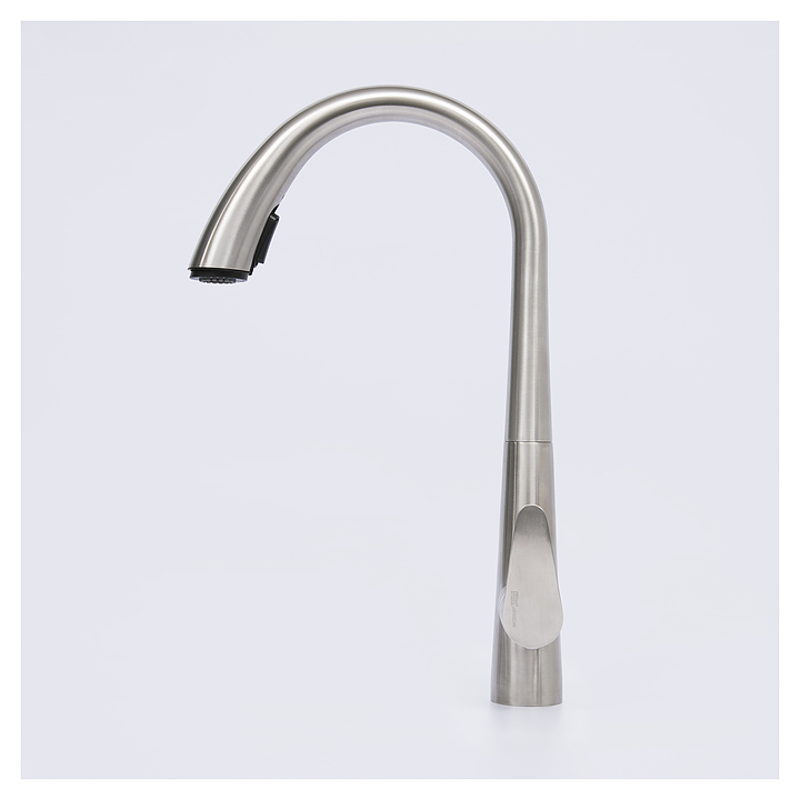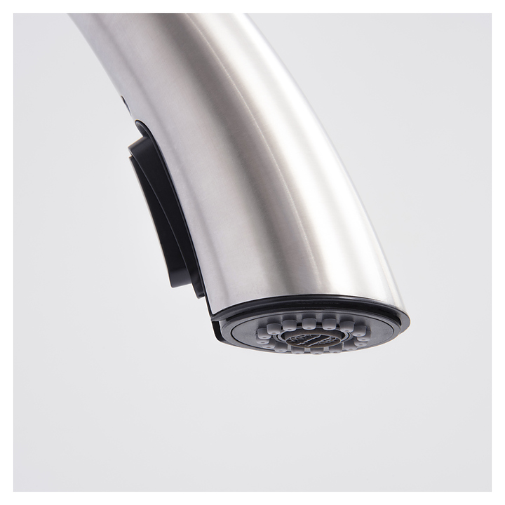 Смеситель Wasserkraft A8617 предназначен для использования в кухонных помещениях для подачи горячей и холодной воды. Модель оснащена изливом с выдвижной лейкой с нейлоновым шлангом, керамическим картриджем, обеспечивающим плавный ход рычага смесителя, контроль и точность при выборе напора и температуры воды, а также аэратором для создания мягкой ровной струи без разбрызгивания. Изделие выполнено из нержавеющей стали. В комплект поставки входят гибкая подводка, выдвижной излив/лейка, выдвижной нейлоновый шланг и набор для монтажа. Особенности: