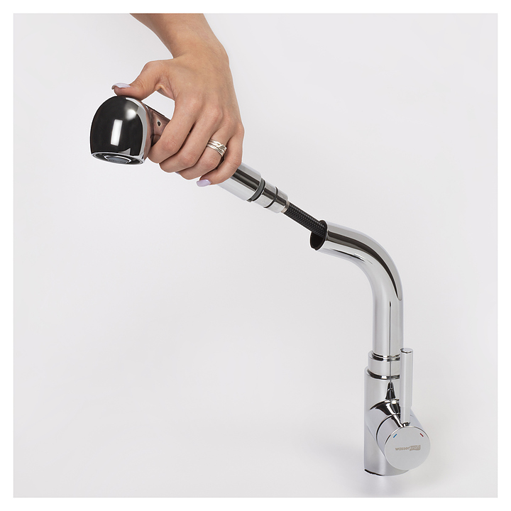 Смеситель Wasserkraft Main 4166 предназначен для использования в кухонных помещениях для подачи горячей и холодной воды. Модель оснащена выдвижным изливом с лейкой и нейлоновым шлангом, керамическим картриджем, обеспечивающим плавный ход рычага смесителя, контроль и точность при выборе напора и температуры воды, а также аэратором для создания мягкой ровной струи без разбрызгивания. Изделие выполнено из латуни, отличающейся прочностью, долговечностью и устойчивостью к перепадам температур. В комплект поставки входят гибкая подводка, нейлоновый шланг, выдвижной излив/лейка и набор для монтажа. Особенности: