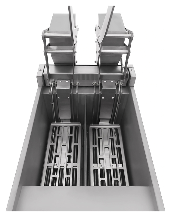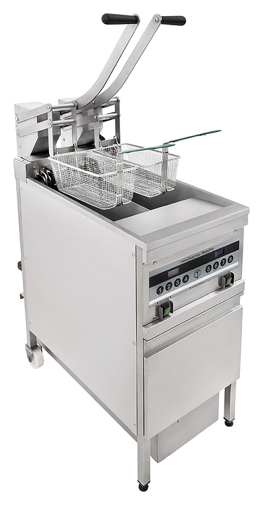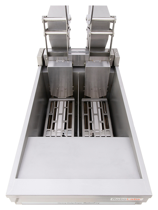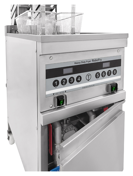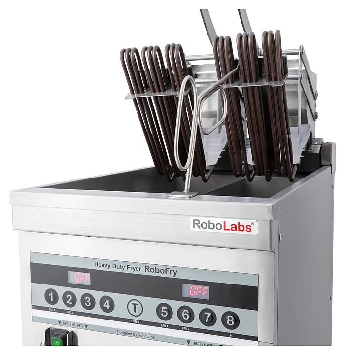 Фритюрница RoboLabs RoboFry ARF предназначена для приготовления различных продуктов в большом количестве масла на предприятиях общественного питания и торговли. Модель оснащена электронной программируемой панелью управления, ручным механизмом поднятия ТЭНов, системой фильтрации масла и закрытой подставкой. Конструкция изготовлена из нержавеющей стали AISI 430. В комплект поставки входят 10 фильтров и 2 корзины из нержавеющей стали. Особенности: