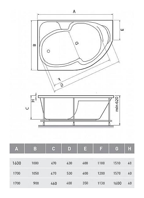 Ванна Relisan Sofi L 170х105 см, акрил, левая