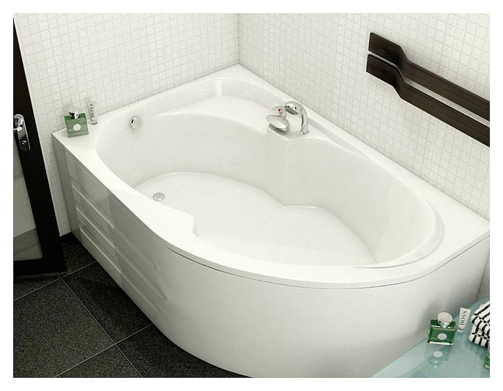 Ванна Relisan Sofi L дополнит интерьер ванной комнаты. Модель оснащена широким выступом с возможностью установки смесителя, диагональное расположение обеспечивает большой простор для телодвижений. Угол наклона спинки и встроенный подголовник гарантируют максимальное расслабление тела. Изделие выполнено из литьевого акрила, который обладает высокой теплоёмкостью, долго не позволяя воде остывать, и способностью поглощать шум при наборе воды, на этой ванне не появляются царапины, она не темнеет и не ржавеет. Каркас, панель, слив-перелив, карниз, бордюр и гидромассаж в комплект поставки не входят. Особенности: