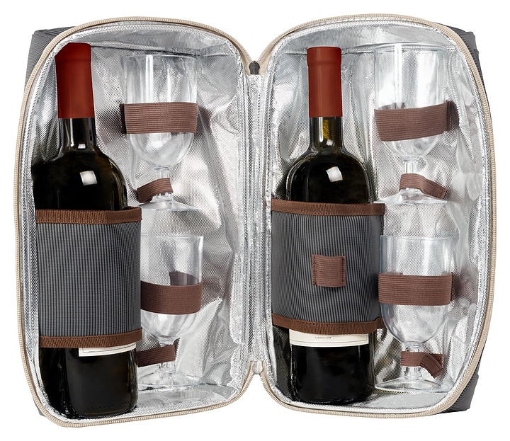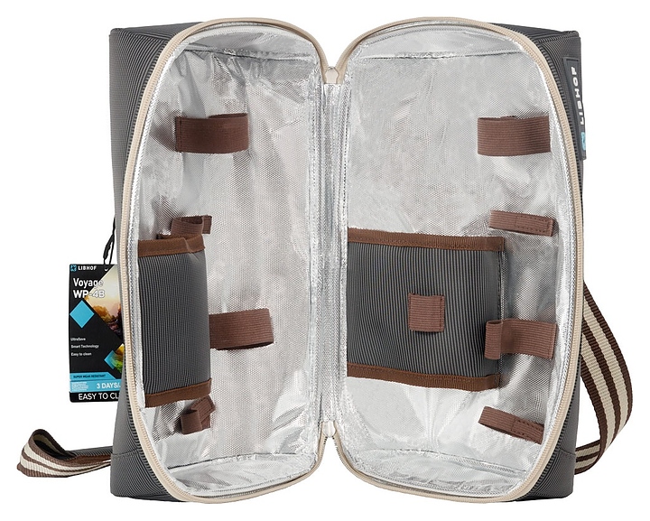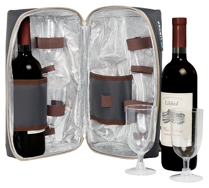Термосумка Libhof Voyage WP-4B предназначена для хранения и транспортировки бутилированного вина и других напитков в автономных изотермических условиях во время прогулок, пикника, поездок и путешествий. Модель оснащена 2 равными секциями на молнии без перегородки. Внешний слой выполнен из высококачественной синтетической ткани в серых тонах с молнией бежевого оттенка, теплоизоляционный слой – из полиэтиленвинилацетата (PEVA) и алюминиевой фольги. В комплект поставки входят 4 пластиковых бокала. Особенности: