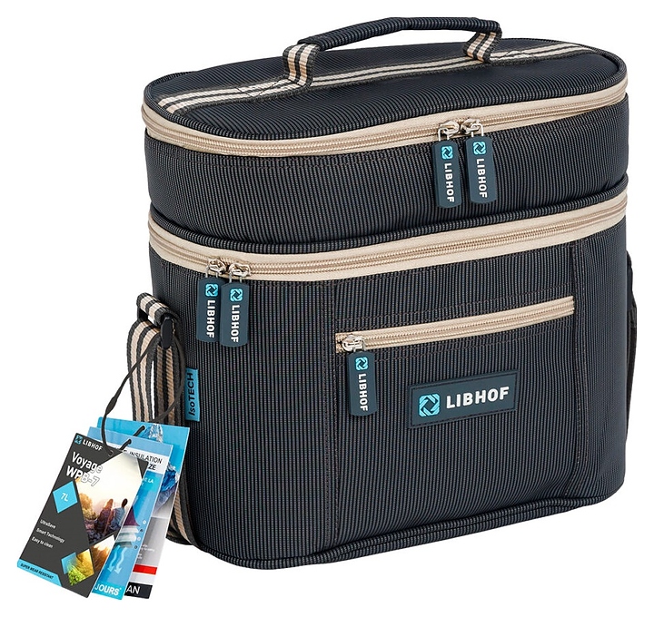 Термосумка Libhof Voyage WPB-07 предназначена для хранения и транспортировки пищевых продуктов и напитков в автономных изотермических условиях во время прогулок, пикника, поездок и путешествий. Модель оснащена 2 вместительными секциями на молниях с плотной перегородкой и фронтальным наружным карманом на молнии. Внешний слой выполнен из высококачественной синтетической ткани в серых тонах с молниями бежевого оттенка, теплоизоляционный слой – из полиэтиленвинилацетата (PEVA). Особенности: